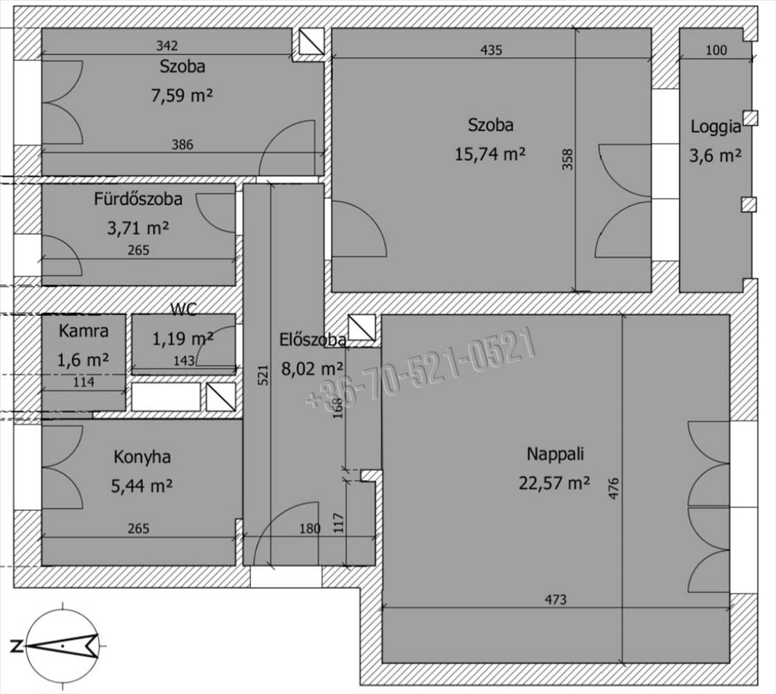 2, 5 Szobás, 66 m2-es, nagyon jó elosztású, loggia-s lakás.