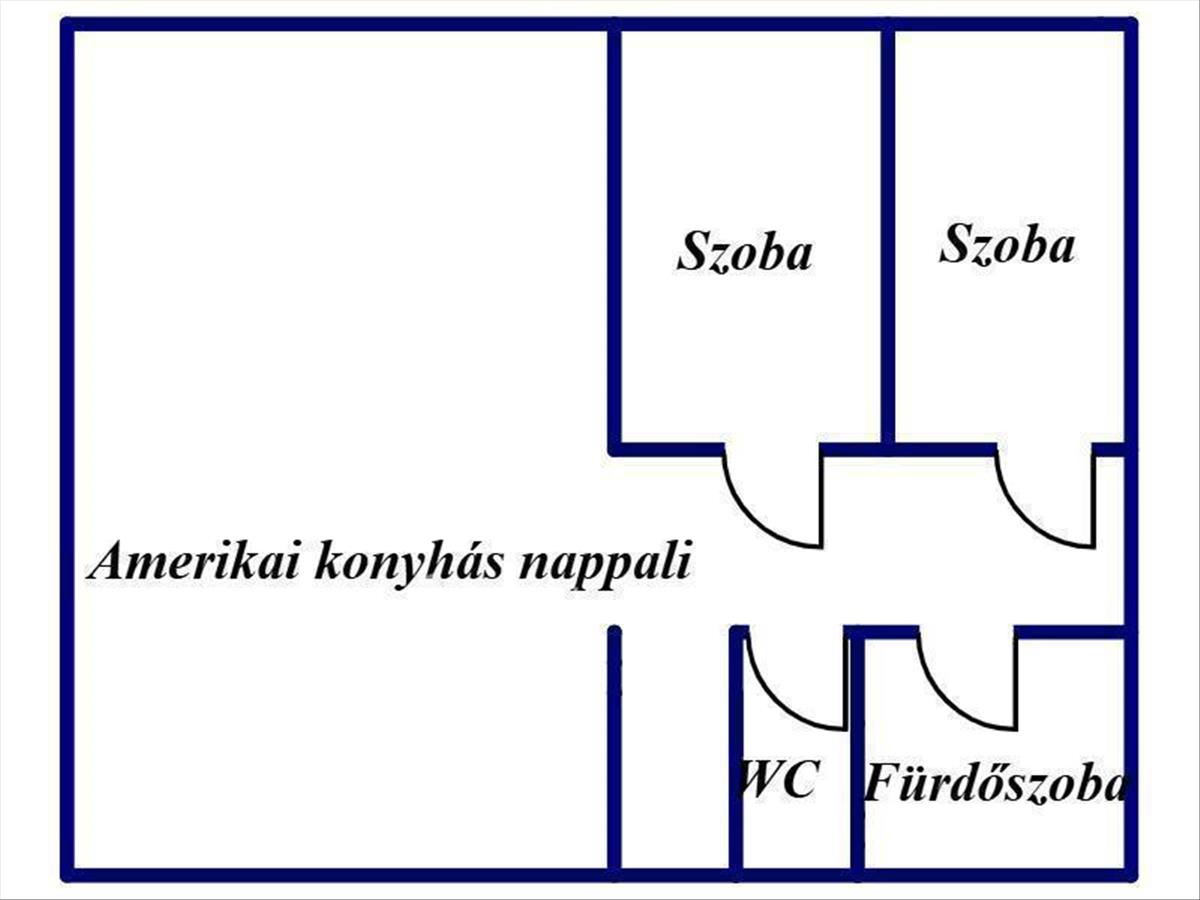 A lakás amerikai konyhás nappalival, 2 szobával, tágas fürdőszobával rendelkezik, elosztása kiváló, terei világosak és jól használhatók.