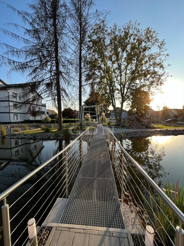 A zárt lakópark központi eleme egy sétánnyal körülvett, hangulatvilágítással megvilágított tó, amely kellemes kikapcsolódást nyújt a lakók számára.