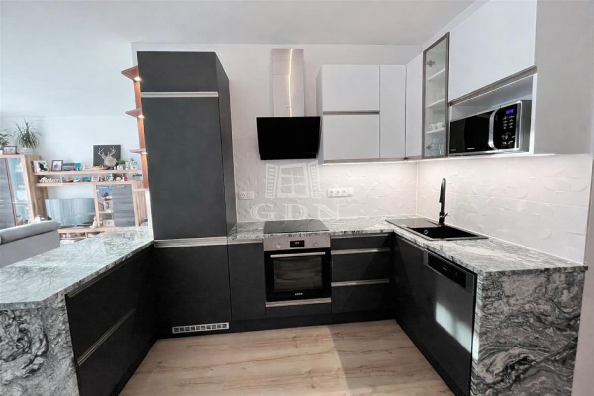 A gránit munkalapos, prémium gépekkel beépített, por, - és újlenyomat álló konyhabútor, a vételár részét képezi.