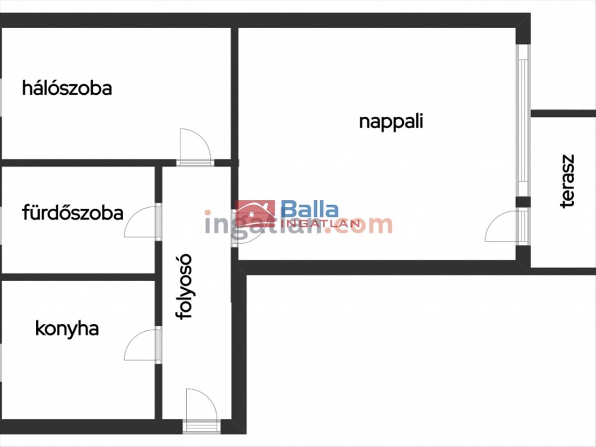 A lakás elrendezése: előszoba, konyha+étkező, kamra, nappali, kijárat a 3 m2-es erkélyre, hálószoba, fürdőszoba+Wc.