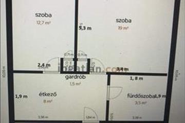 Két külön bejáratú szoba, ebédlő, konyha, tusolós fürdőszoba, külön wc, kamra, előszoba, erkély.