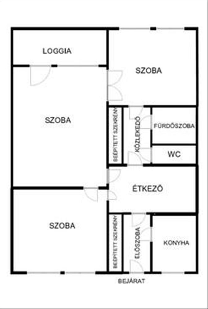 - 1. emeleten található, 3 tágas külön nyíló szoba, konyha + étkező, fürdőszoba, wc külön helységben, 4 m2-es loggia