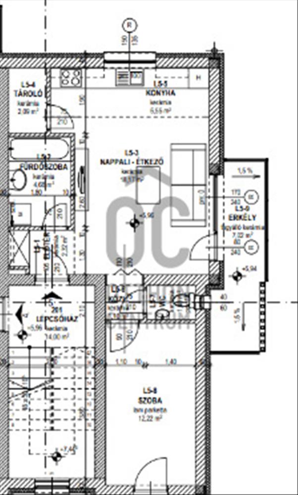 – amerikai konyhás nappali + 1 hálószoba