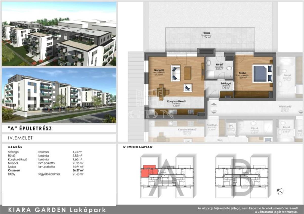 Szombathely zöldövezeti, dinamikusan fejlődő városrészén, energiahatékony, modern lakások várják új tulajdonosaikat. Kiara Garden lakóparkban kettő ütemben épülő, minden igényt kielégítő lakásai nappali+1 szobával, nappali+2 szobával, nappali+ 3 szobával fognak rendelkezni. Az ingatlanokhoz nagy erkélyek teraszok is tartoznak. a legnagyobb lakás dupla komfortos kialakítású lesz. Egyedülállóktól a nagy családosokig megfelelő otthona lehet bárkinek. a belváros közeli ingatlanok lehetőséget biztosítanak egyedi belső kialakításokra. a lakás gazdaságos fűtéséről és melegvíz ellátásáról távhő szolgáltató gondoskodik. a fűtésrendszer egyedileg szabályozható, saját hőmennyiség mérővel ellátott. a hőleadás padlófűtésen keresztül történik. Az ingatlanok ideális hőmérsékletét, a nappaliban elhelyezett split klíma biztosítja. Az épületben kellő számú zárható tároló kerül kialakításra, külön bejárattal. ( 2. 96 m2-es tároló 1 790 000 Ft ) Természetesen vannak nagyobb tárolók is. a lakótömbök udvarán található felszíni parkolók ára 1 490 000 Ft. Bővebb tájékoztatásért kérem vegye fel velem a kapcsolatot. FIX 3% lakáshitelre megvehető