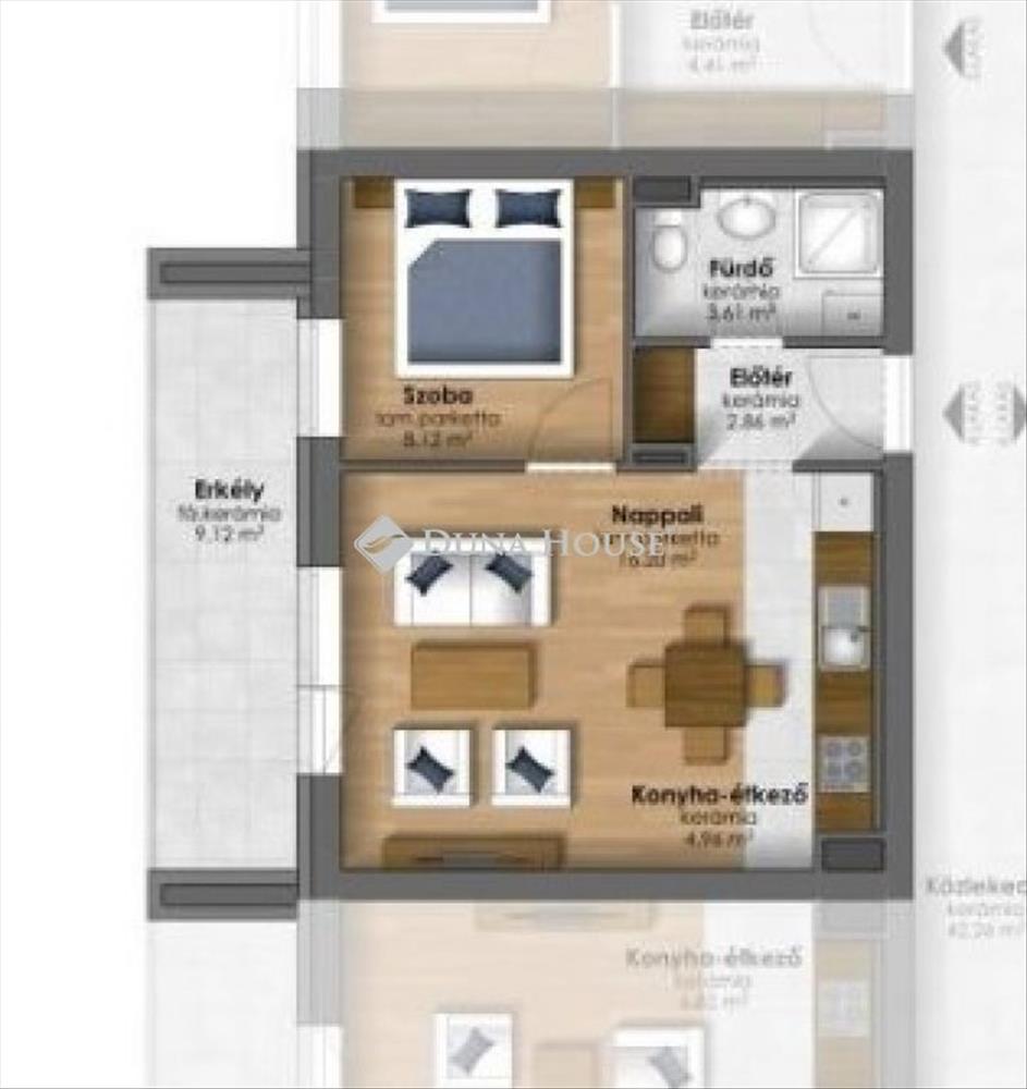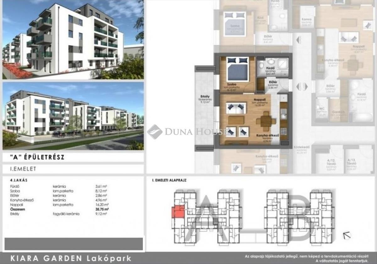 A hirdetésben szereplő lakás első emeleti, nappali + 1 szobás, alapterülete 35, 75 nm + 8, 94 nm erkély tartozik hozzá.