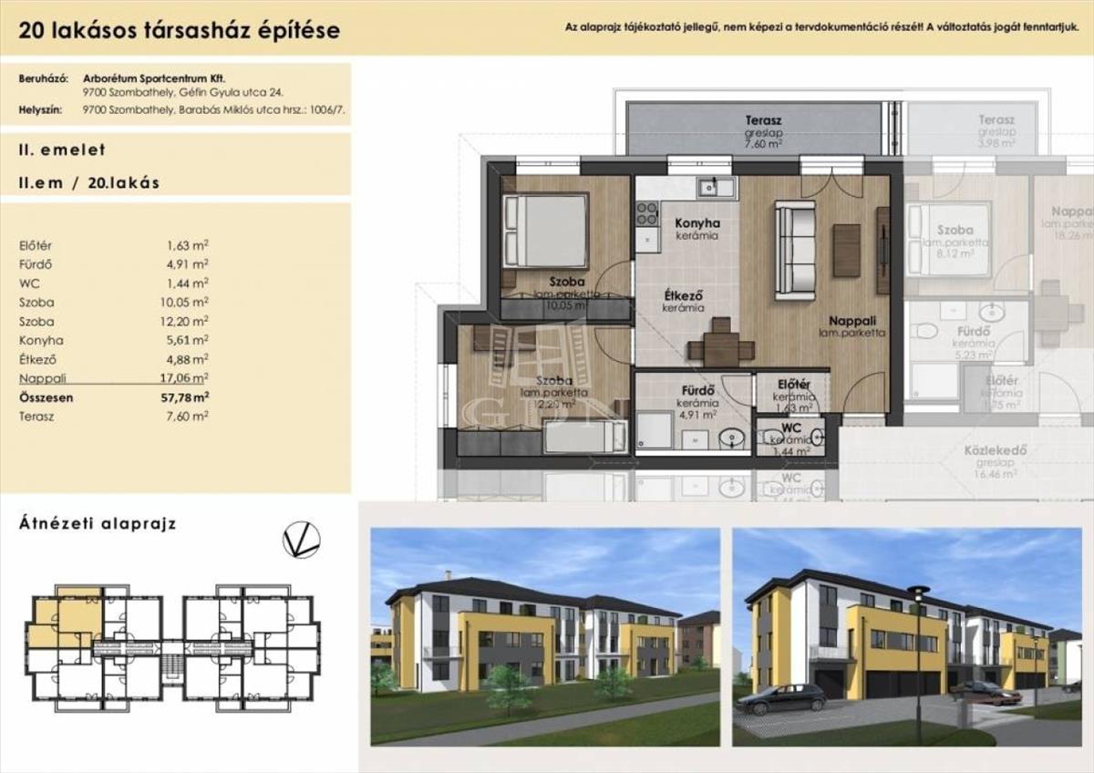 A három szintes kettő emeletes, 20 lakásos modern társasházak minden igényt kielégítő, magas műszaki tartalommal valósulnak meg. a kiváló tájolású 40-67 m2 közötti ingatlanokat nagyon jó elosztás és élhető terek jellemzik. a lakások nappali+egy, nappali +kettő szobásak lesznek. a földszinti lakások komfortérzetét teraszok, saját kertek az emeleti lakásokét jó méretű erkélyek fokozzák. Nyílászárói 3 rétegű fokozottan hő- és hangszigetelt üvegezésű műanyag ablakok és erkélyajtók, redőny fogadására alkalmas szemöldök kialakítással. a lakások bejárati ajtaja mabisz minősítéssel rendelkező tömör, több ponton záródó biztonsági ajtó. Fűtése központi gázfűtés tervezett, kondenzációs gázkazánnal a lakásokban egyedi hőmennyiség szabályozással és mérővel, padlófűtéses hőleadással. Klímaelőkészítést a vételár magában foglalja. Hideg -meleg burkolatok, szaniterek, csaptelepek, beltéri ajtók választhatók. Az ingatlanhoz felszíni parkoló, garázs vásárolható.