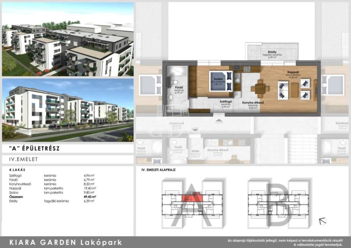 Szombathely zöldövezeti, dinamikusan fejlődő városrészén, energiahatékony, modern lakások várják új tulajdonosaikat. Kiara Garden lakóparkban kettő ütemben épülő, minden igényt kielégítő lakásai nappali+1 szobával, nappali+2 szobával, nappali+ 3 szobával fognak rendelkezni. Az ingatlanokhoz nagy erkélyek teraszok is tartoznak. a legnagyobb lakás dupla komfortos kialakítású lesz. Egyedülállóktól a nagy családosokig megfelelő otthona lehet bárkinek. a belváros közeli ingatlanok lehetőséget biztosítanak egyedi belső kialakításokra. a lakás gazdaságos fűtéséről és melegvíz ellátásáról távhő szolgáltató gondoskodik. a fűtésrendszer egyedileg szabályozható, saját hőmennyiség mérővel ellátott. a hőleadás padlófűtésen keresztül történik. Az ingatlanok ideális hőmérsékletét, a nappaliban elhelyezett split klíma biztosítja. Az épületben kellő számú zárható tároló kerül kialakításra, külön bejárattal. ( 2. 96 m2-es tároló 1 790 000 Ft ) Természetesen vannak nagyobb tárolók is. a lakótömbök udvarán található felszíni parkolók ára 1 490 000 Ft. Bővebb tájékoztatásért kérem vegye fel velem a kapcsolatot.
