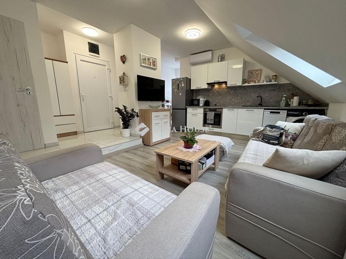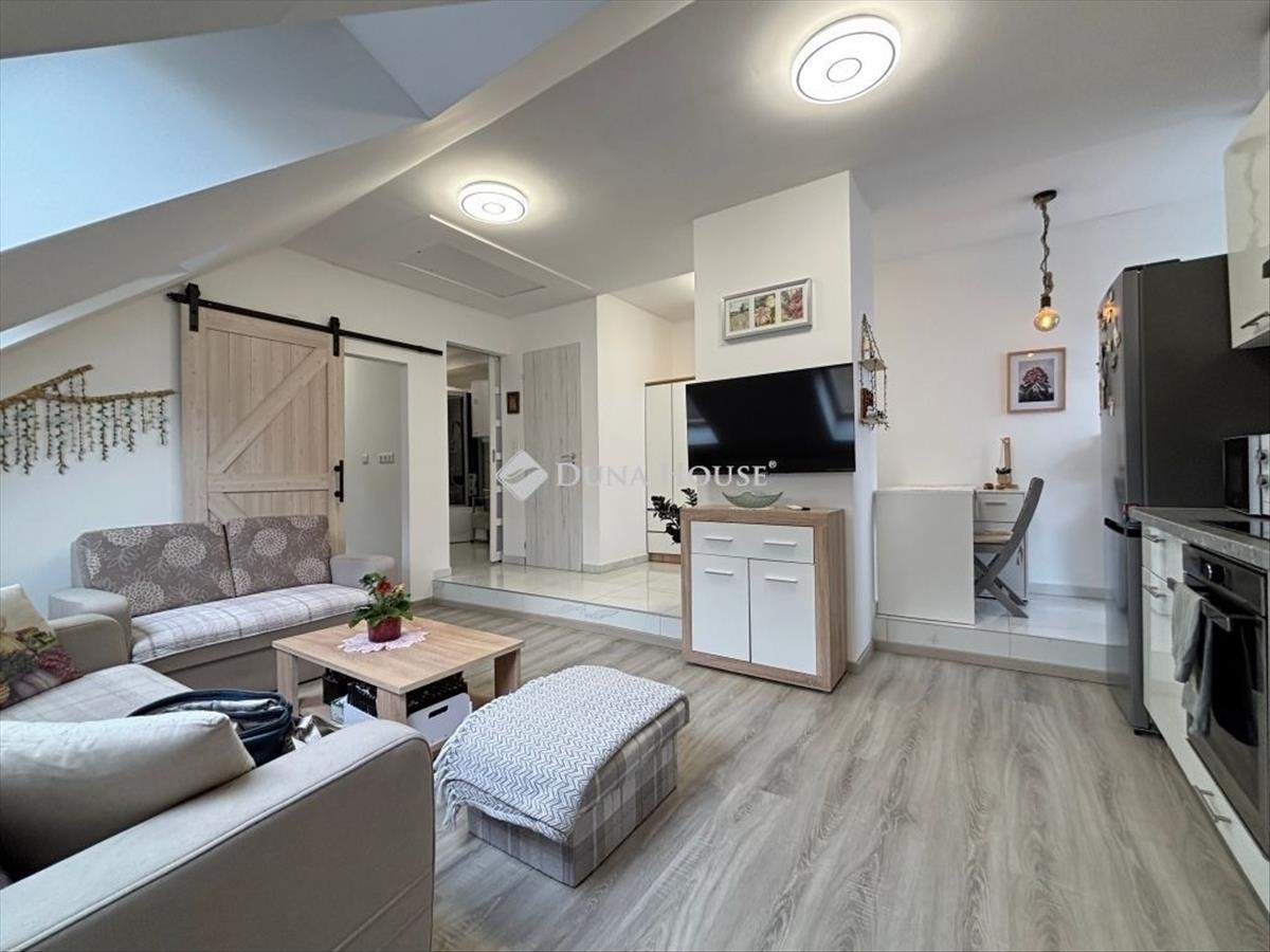 Szombathely déli kertvárosi részén, az interspar közelében található 4 lakásos társasház 2. emeletén, 2023-ban került átadásra a lakás. a tetőtéri ingatlan nettó 36, bruttó 45 m2, kialakítása nappali+konyha, hálószoba, fürdő, külön wc és fedett terasz. Kiváló elosztású, élhető kis lakás, praktikusan berendezve, műszakilag és esztétikailag is szinte új állapotú! a vételár tartalmazza az ingatlan teljes berendezését, a gépesített konyhát, a méretre készült szekrényeket, az ülőgarnitúrát a hálószoba-bútort, lámpákat, függönyöket stb. Plusz a zárt udvaron egy 16 m2-es garázst is!