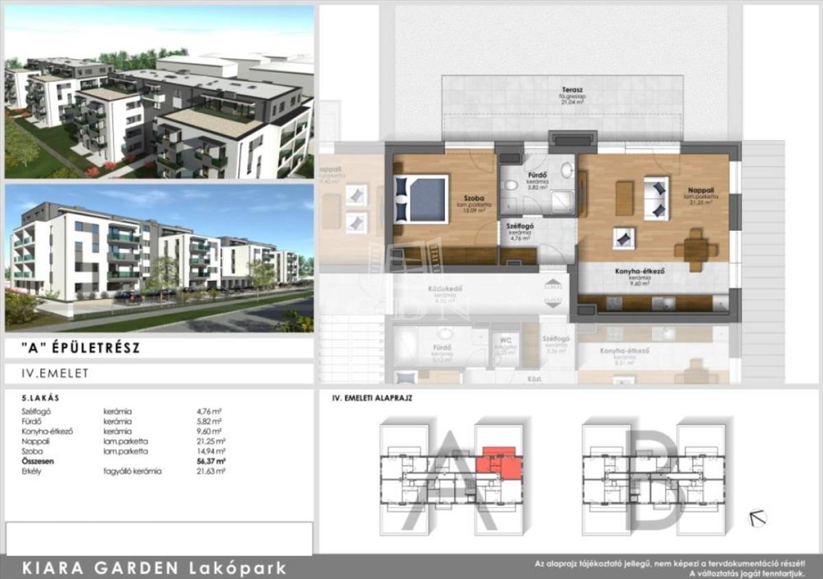 Szombathely zöldövezeti, dinamikusan fejlődő városrészén, energiahatékony, modern lakások várják új tulajdonosaikat. Kiara Garden lakóparkban kettő ütemben épülő, minden igényt kielégítő lakásai nappali+1 szobával, nappali+2 szobával, nappali+ 3 szobával fognak rendelkezni. Az ingatlanokhoz nagy erkélyek teraszok is tartoznak. a legnagyobb lakás dupla komfortos kialakítású lesz. Egyedülállóktól a nagy családosokig megfelelő otthona lehet bárkinek. a belváros közeli ingatlanok lehetőséget biztosítanak egyedi belső kialakításokra. a lakás gazdaságos fűtéséről és melegvíz ellátásáról távhő szolgáltató gondoskodik. a fűtésrendszer egyedileg szabályozható, saját hőmennyiség mérővel ellátott. a hőleadás padlófűtésen keresztül történik. Az ingatlanok ideális hőmérsékletét, a nappaliban elhelyezett split klíma biztosítja. Az épületben kellő számú zárható tároló kerül kialakításra, külön bejárattal. ( 2. 96 m2-es tároló 1 790 000 Ft ) Természetesen vannak nagyobb tárolók is. a lakótömbök udvarán található felszíni parkolók ára 1 490 000 Ft. Bővebb tájékoztatásért kérem vegye fel velem a kapcsolatot. FIX 3% lakáshitelre megvehető