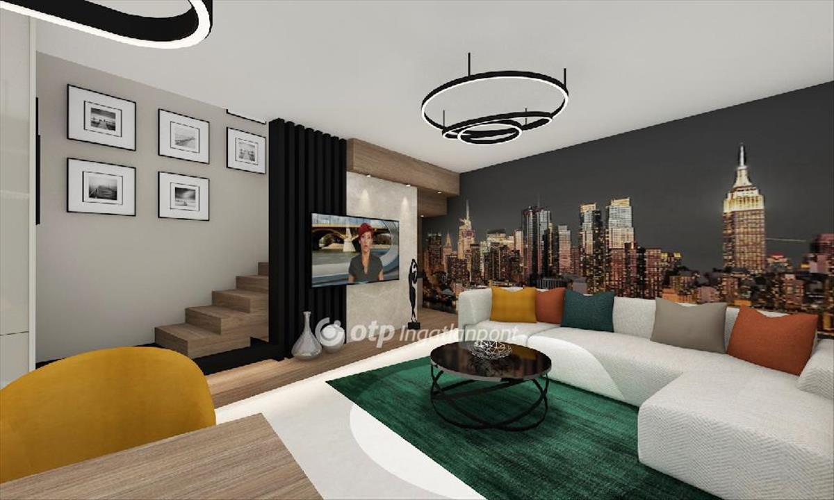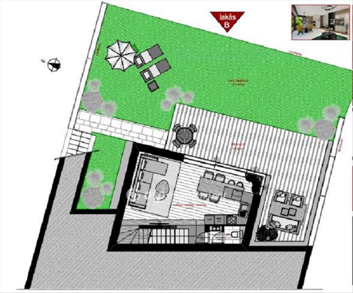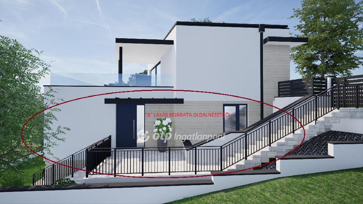 B lakás, lakóterület: 71. 19 m2, plusz 44, 82 m2-es panorámás terasz, és 154, 9 m2-es közvetlen kertkapcsolat.