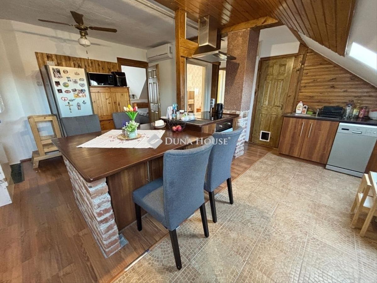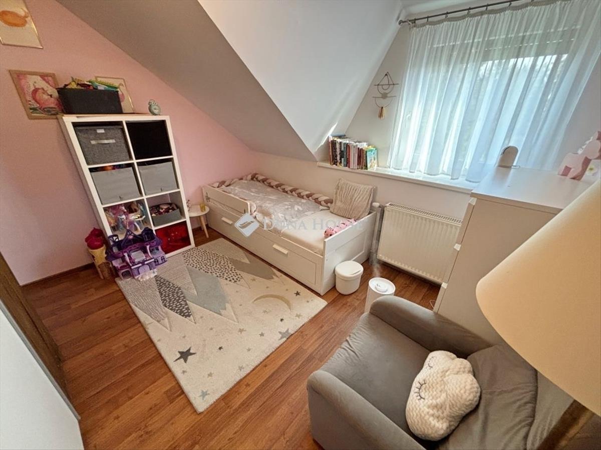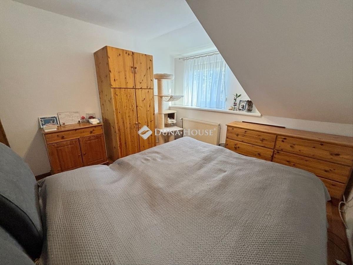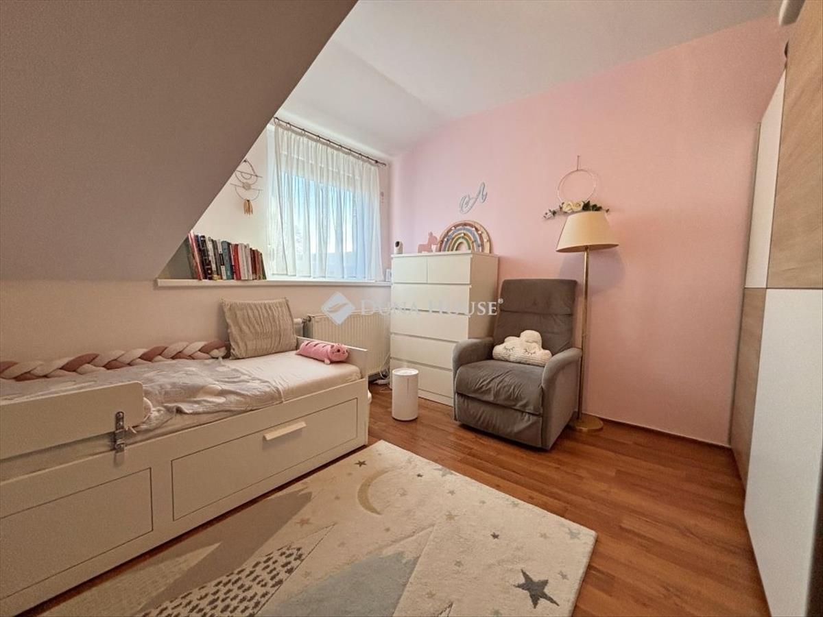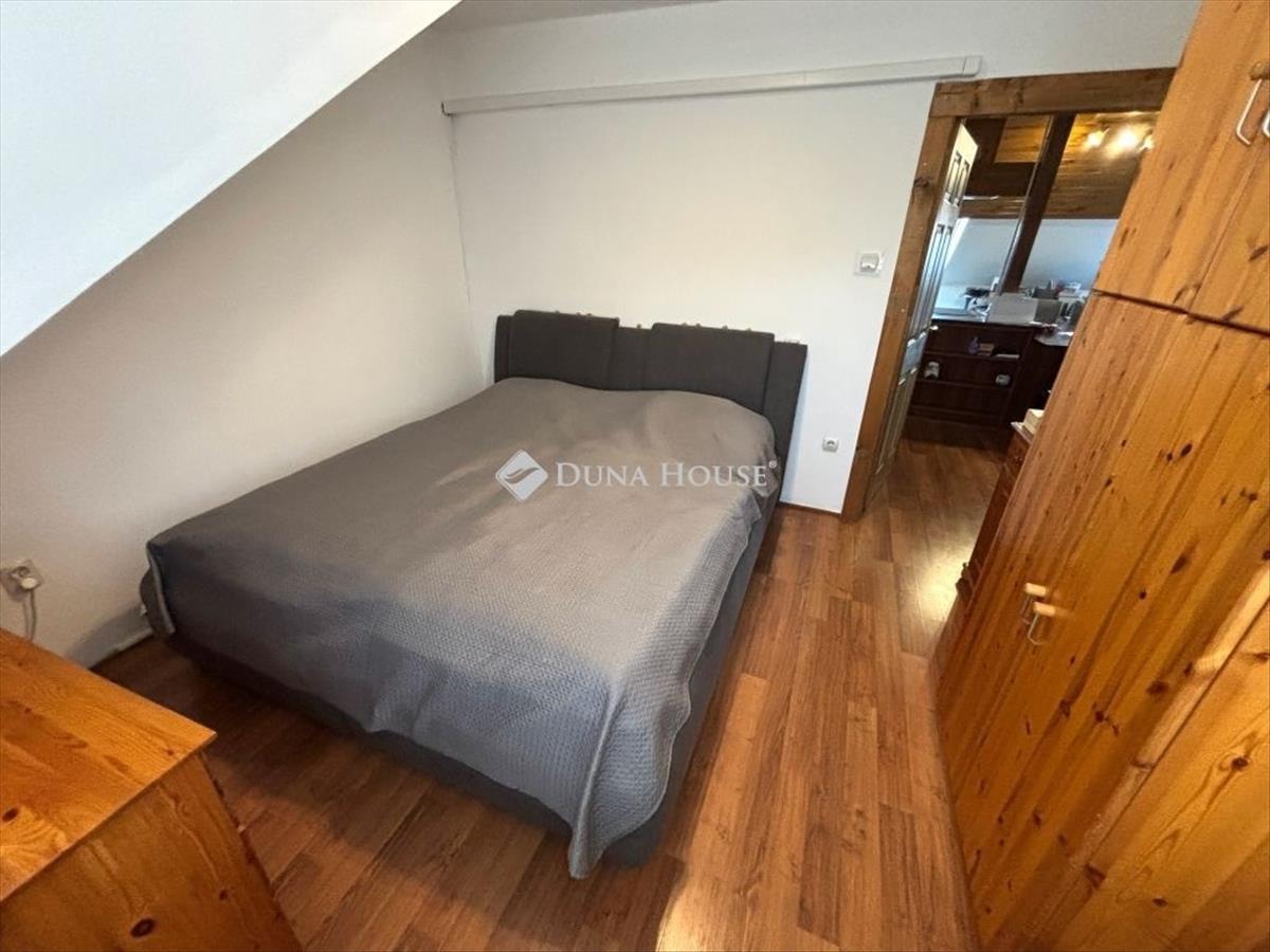 Szombathely kámon városrészén jó állapotú, nettó 90 m2 alapterületű lakás eladó. Az ingatlan egy kétlakásos társasház utcafronti oldalára nyílik, ahol egy kis udvarrész is tartozik hozzá. a térkövezett udvaron parkolni is lehet egy autóval, további egy gépkocsival a kapu előtti hídon. a lakás nagyobb része két szintre osztott, az emeleten egy tágas világos nappali fedett terasszal és egy mellékhelyiség van kialakítva, a tetőtérben kapott helyet a két hálószoba, a konyha étkezővel, egy fürdő és egy kis háztartási helyiség wc-el. a földszinti bejárati részen van még egy kis tároló és az előszoba. Az ingatlan rendezett karbantartott állapotú, az elmúlt években megújult többek között a nappali, és a nyílászárók is korszerűsítve lettek, az ablakok redőnnyel és rovarhálóval is fel vannak szerelve. a tetőtéri ablakokat tavaly cserélték korszerűbbre.