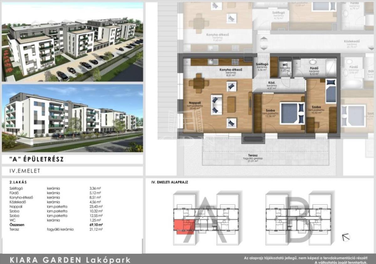 Szombathely zöldövezeti, dinamikusan fejlődő városrészén, energiahatékony, modern lakások várják új tulajdonosaikat. Kiara Garden lakóparkban kettő ütemben épülő, minden igényt kielégítő lakásai nappali+1 szobával, nappali+2 szobával, nappali+ 3 szobával fognak rendelkezni. Az ingatlanokhoz nagy erkélyek teraszok is tartoznak. a legnagyobb lakás dupla komfortos kialakítású lesz. Egyedülállóktól a nagy családosokig megfelelő otthona lehet bárkinek. a belváros közeli ingatlanok lehetőséget biztosítanak egyedi belső kialakításokra. a lakás gazdaságos fűtéséről és melegvíz ellátásáról távhő szolgáltató gondoskodik. a fűtésrendszer egyedileg szabályozható, saját hőmennyiség mérővel ellátott. a hőleadás padlófűtésen keresztül történik. Az ingatlanok ideális hőmérsékletét, a nappaliban elhelyezett split klíma biztosítja. Az épületben kellő számú zárható tároló kerül kialakításra, külön bejárattal. ( 2. 96 m2-es tároló 1 790 000 Ft ) Természetesen vannak nagyobb tárolók is. a lakótömbök udvarán található felszíni parkolók ára 1 490 000 Ft. Bővebb tájékoztatásért kérem vegye fel velem a kapcsolatot. FIX 3% lakáshitelre megvehető