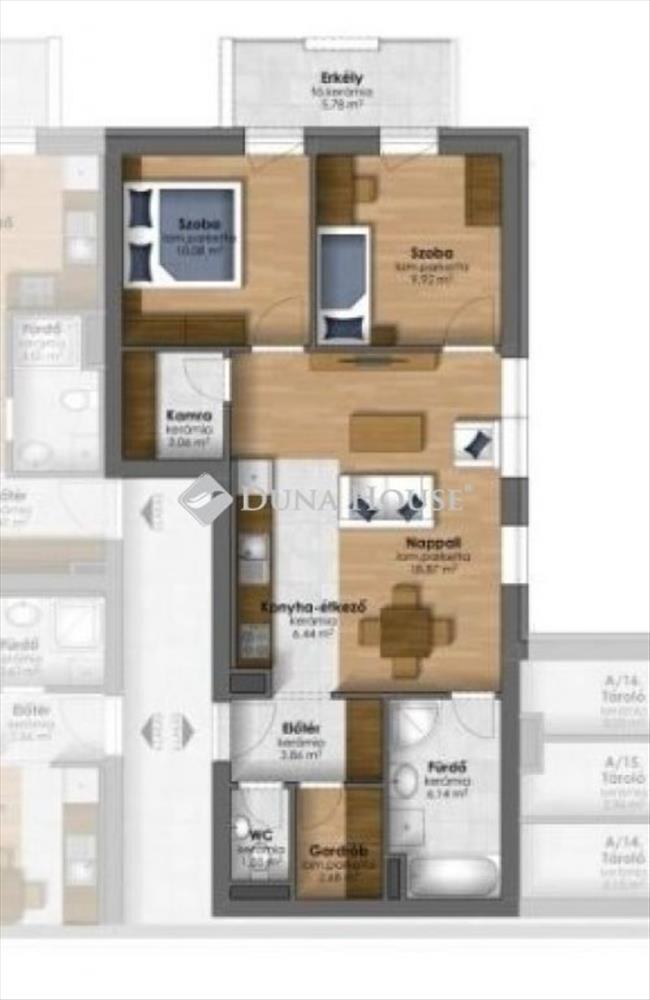 A hirdetésben szereplő lakás első emeleti, nappali + 2 szobás, alapterülete 62, 6 nm + 5, 78 nm terasz tartozik hozzá.
