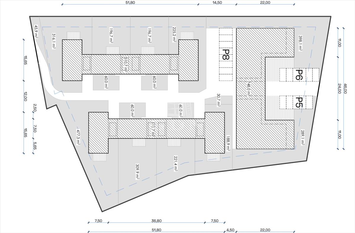 - Földszinti lakások saját telekrésze lekerítve,