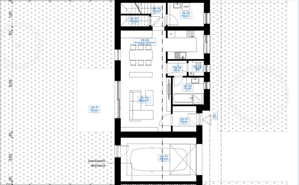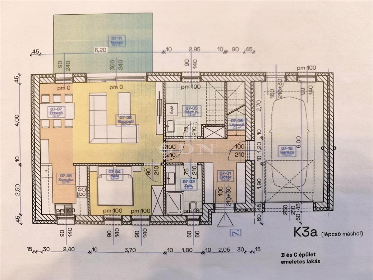 kertrész kb. 200 Nm. a garázs teteje monolit födém, járható,