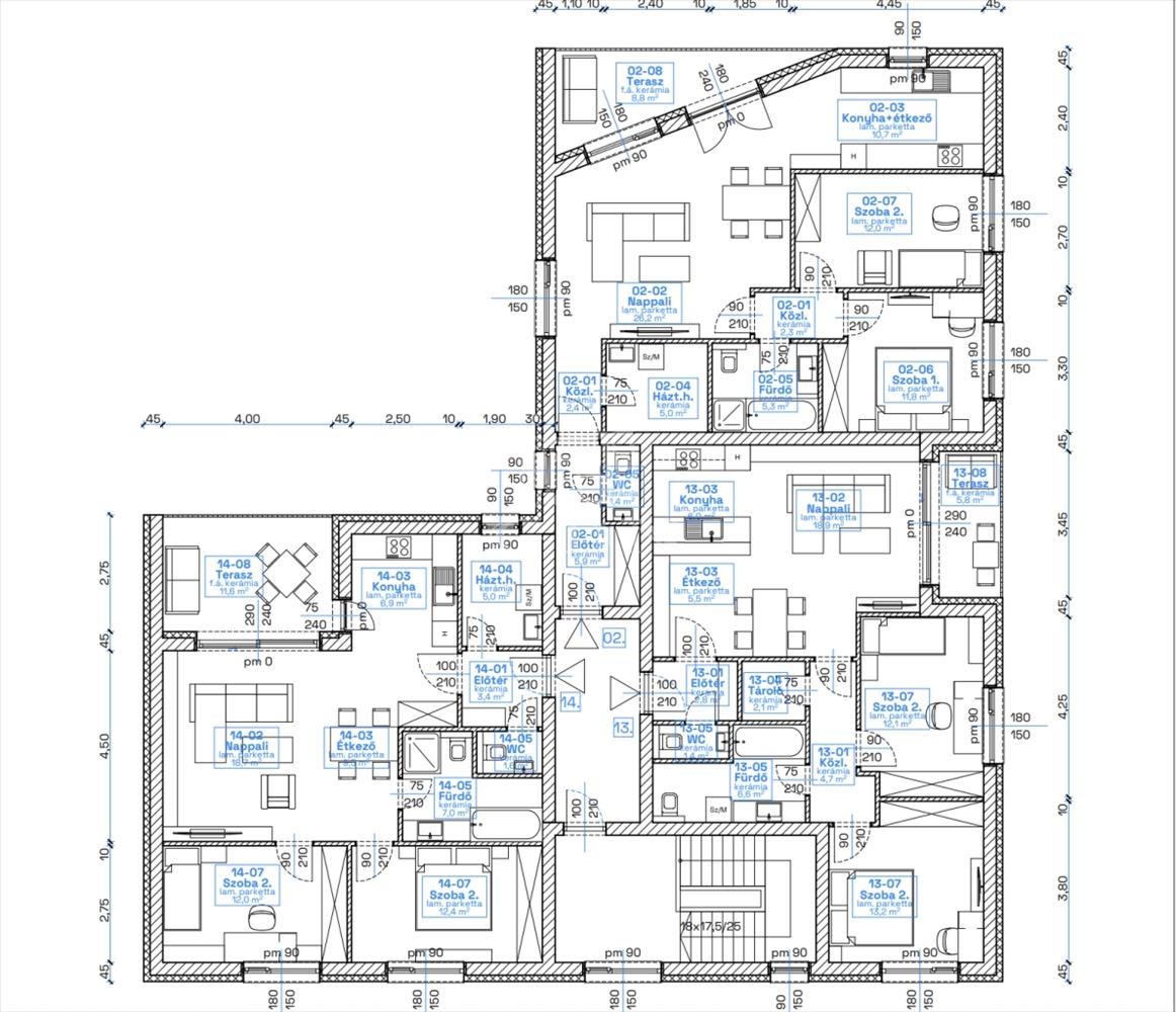 A lakások alapterülete: nettó 146 nm + 15 nm terasz + saját