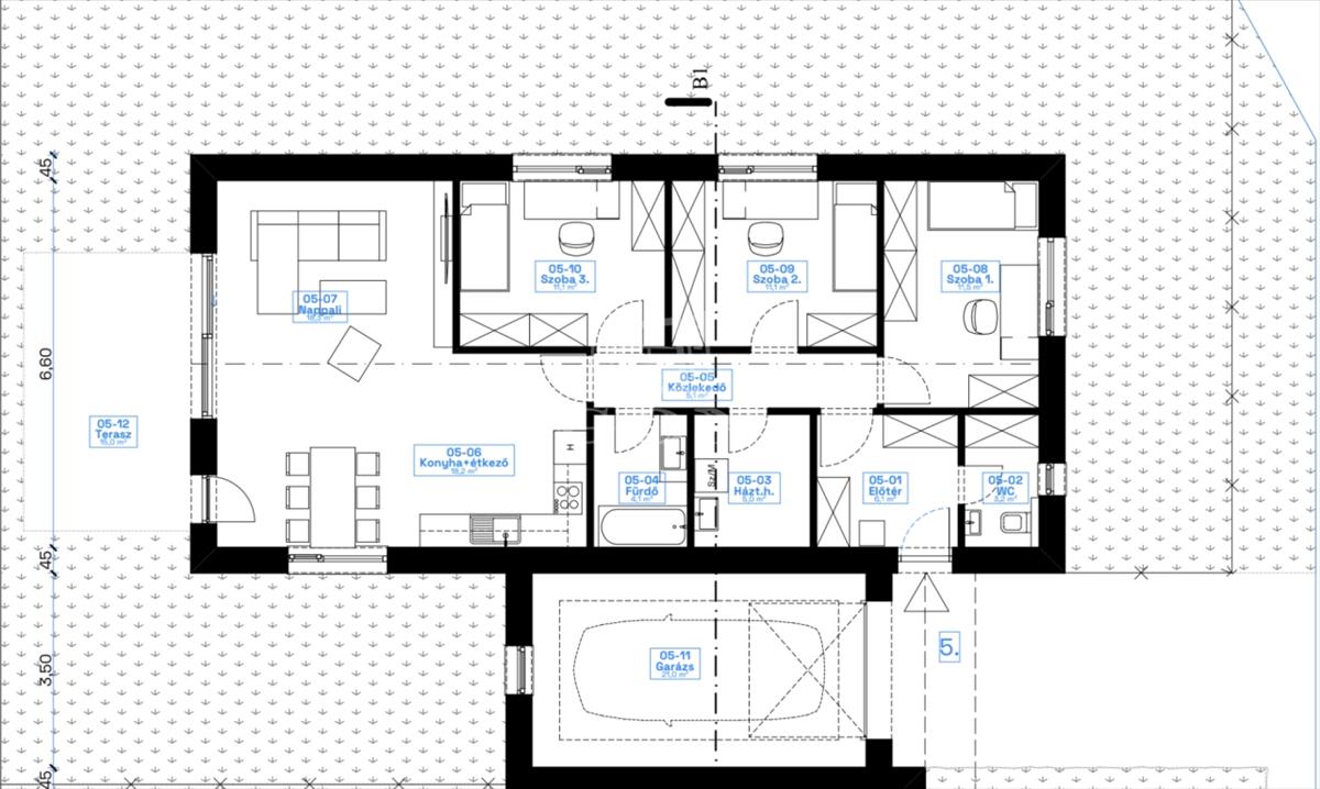 kertrész kb. 200 Nm. a garázs teteje monolit födém, járható,