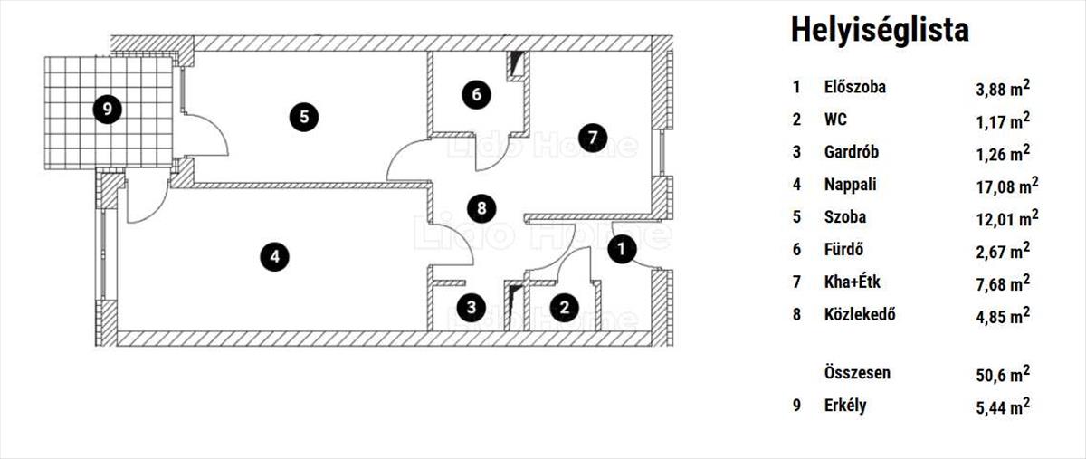 -Helyiségei: előszoba, közlekedő, nappali, konyha+étkező, szoba, gardrób, fürdő, wc.