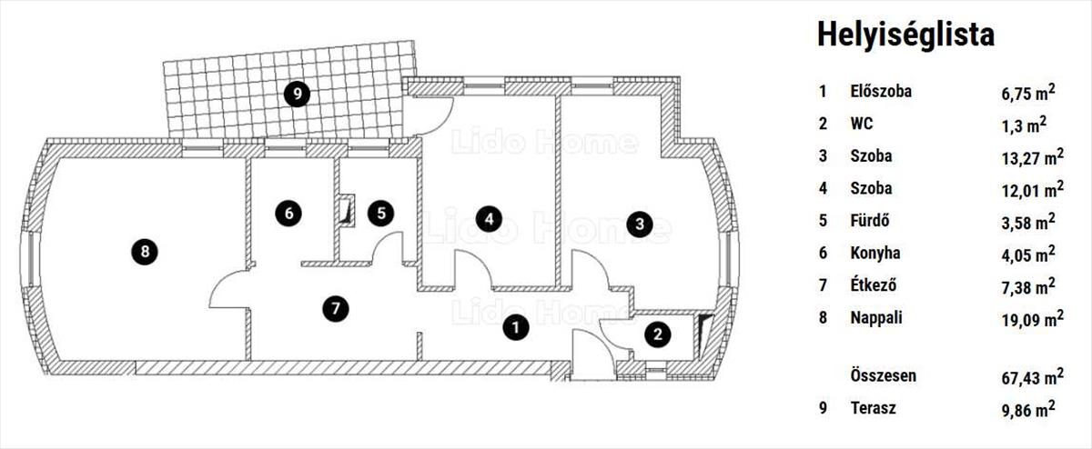 -Alapterülete 67 nm, terasz 9, 86 nm
