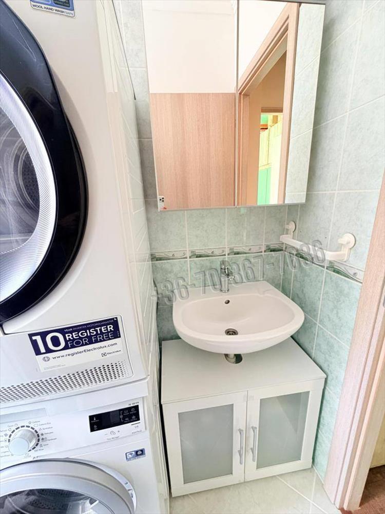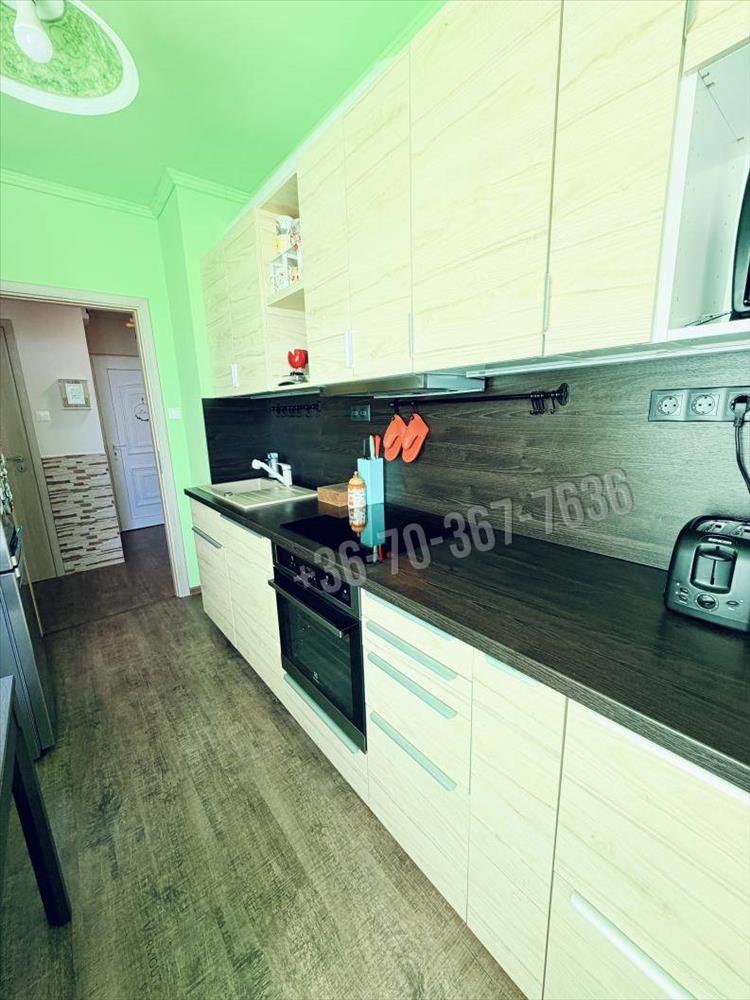 A konyhába igényes, beépített konyhabútor került Electrolux konyhai gépekkel, kivezetett szagelszívóval. a melegburkolatos helyiségekben vinyl burkolat, az egész lakásban új beltéri ajtók kerültek beépítésre.