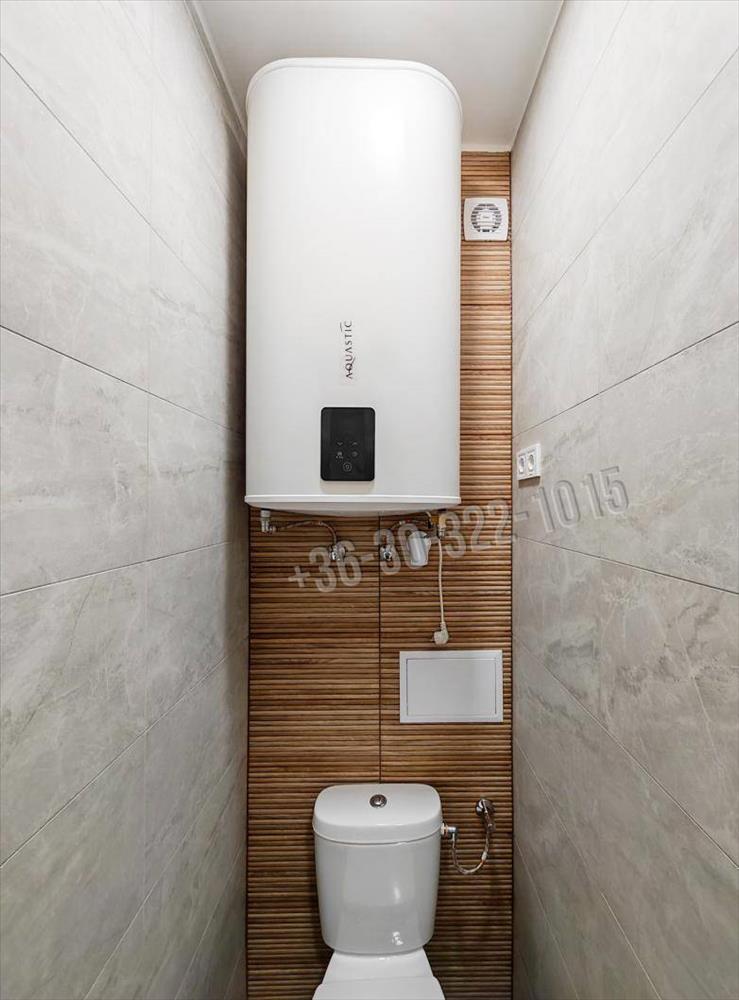 A lakás fűtésérő a szobákban elhelyezett hálózatról is vezérelhető elektromos fűtőpanelek, míg a meleg víz ellátásáról egy 100 literes, éjszakai áramról működő Aquastic villanybojler gondoskodik.