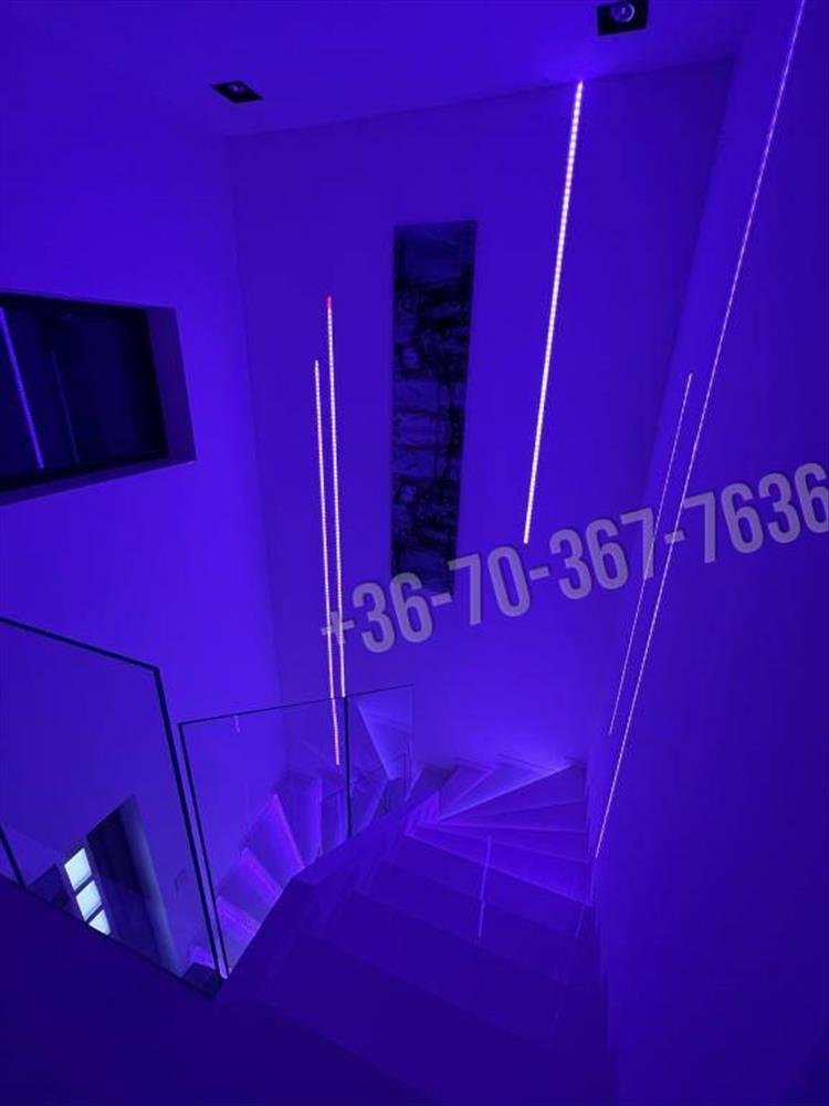 -A lépcsőház egyedi kialakítású, olasz fiandre kőporcelán burkolással, ledes megvilágítással.