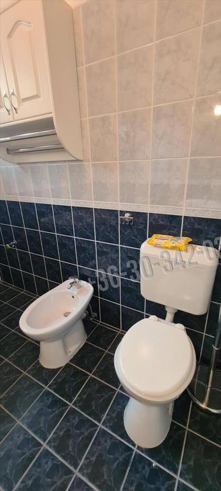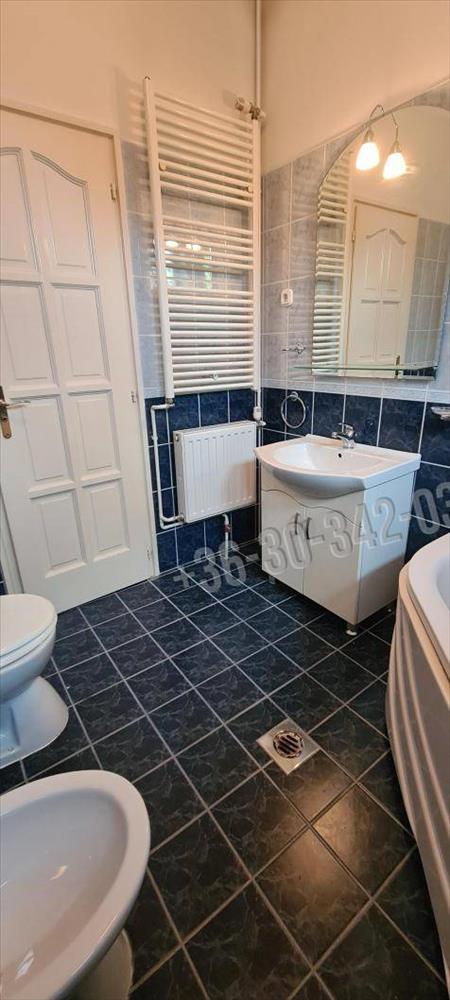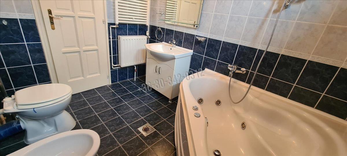 A fürdőszoba tágas, sarokkádas, 2 ablakon keresztül is érkezik be fény, törölközőszárító radiátorral és bidével is felszerelt.