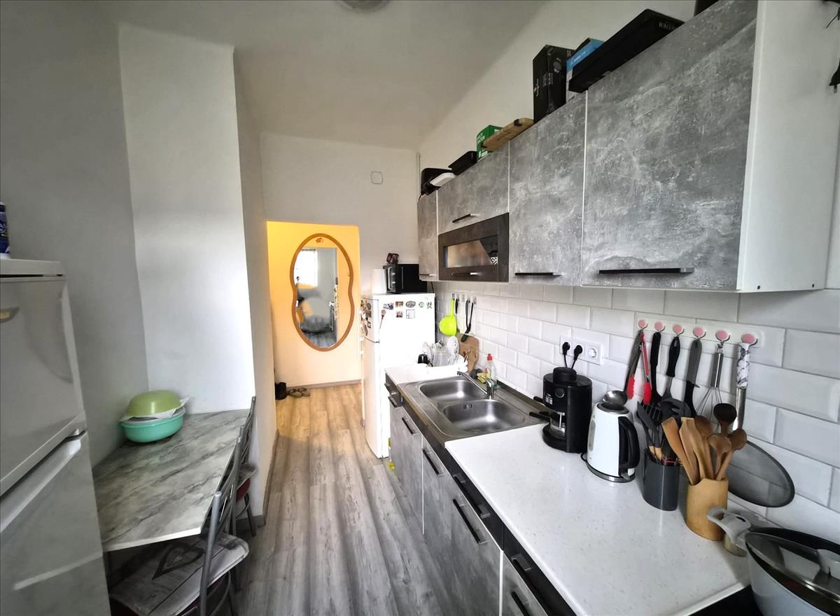 Az eladó lakás része egy kényelmes méretű konyha is, amelyből egy különálló kamra nyílik, így a tárolás praktikus módon megoldott. Ezen kívül egy fürdőszoba mellett a mellékhelyiség és egy széles, jól használható közlekedő egészíti ki a helyiségek sorát.