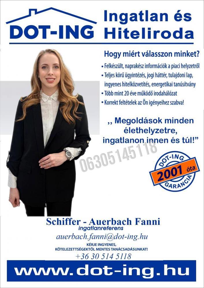 Az eladó lakások menüpontban további hirdetések között is böngészhetsz. Ha van kedved, akkor böngészhetsz a Schiffer-Auerbach Fanni összes hirdetése között, vagy akár a/az Dot-Ing 2001 Ingatlanirodák Kft. összes hirdetése között is.