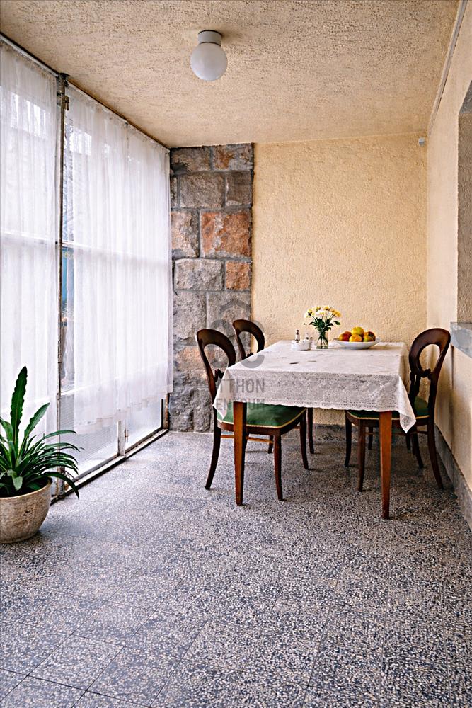 A terek arányosak, átgondoltak, finoman őrzik egy igényes, kulturált múlt lenyomatát. a konyha és az üvegezett veranda közötti nagy tálalóablak különleges kapcsolatot teremt: a veranda egész évben használható, természetközeli étkezőként működik, közvetlen kertkapcsolattal.