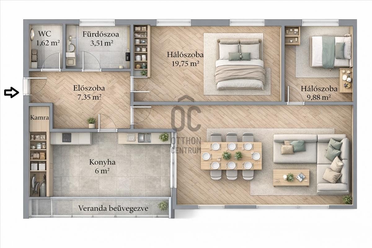 Ez az ingatlan nem csupán lakásként értelmezhető, de családosoknak egy élmény a hatalmas nappalijával.