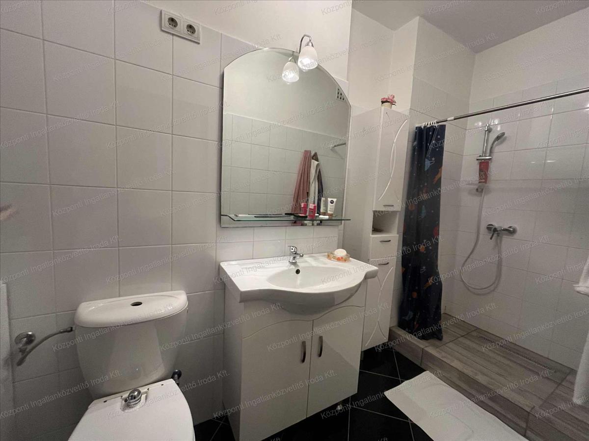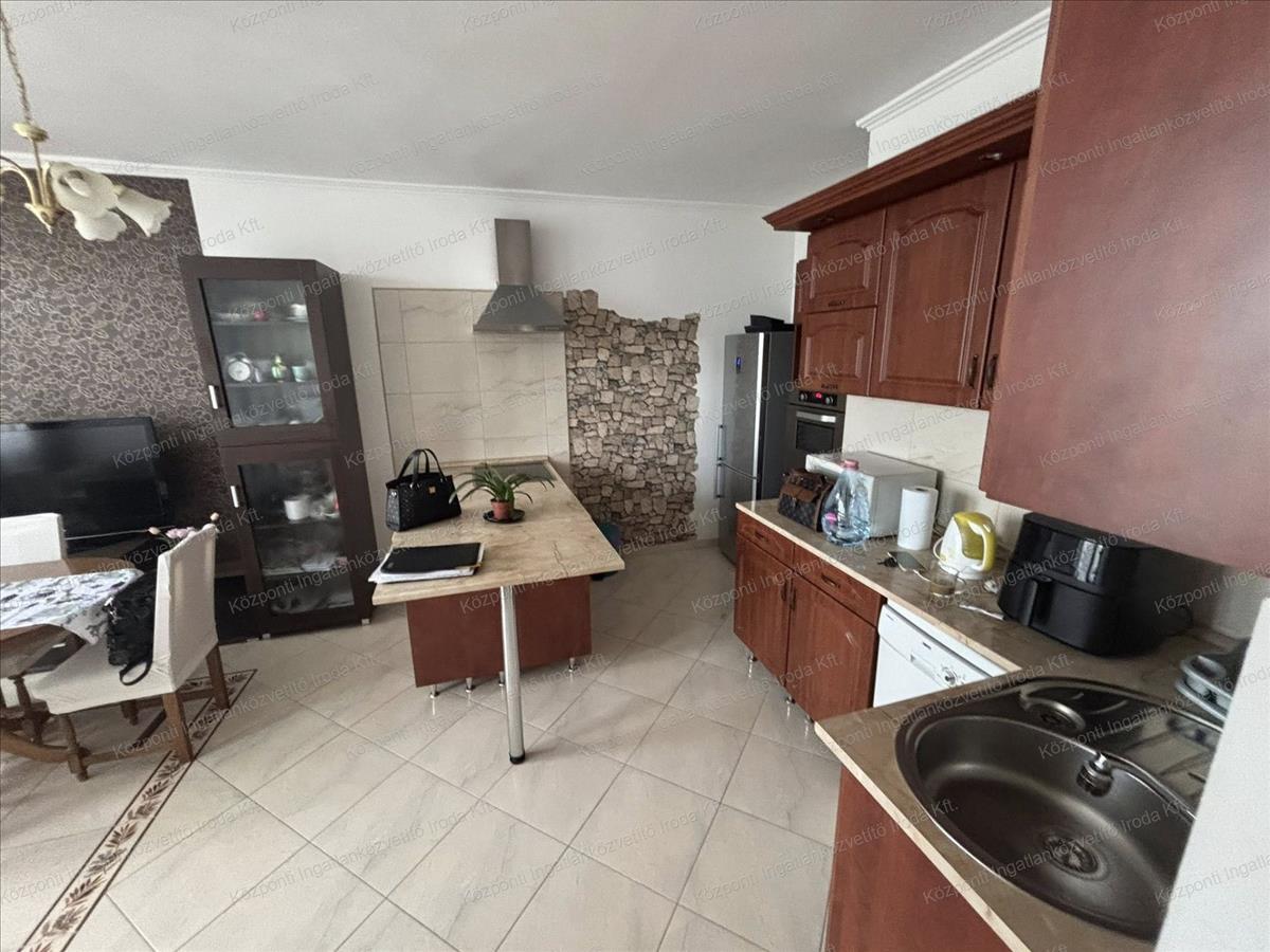 Az ingatlan egyedileg átalakított, helyet kapott egy amerikai konyha -étkező-nappali, hálószoba, gardróbszoba, közlekedő, konyha, fürdőszoba WC-vel, kilépő.  A felújítás során cserére kerültek a víz és villanyhálózatok, a külső és belső nyílászárók. Az ablakok műanyagok, szúnyoghálóval felszereltek, a bejárati ajtó több ponton záródó, biztonsági.  A hálószoba parkettával, a többi helyiség járólappal burkolt.  Az otthon melegéről távfűtés gondoskodik, a hőleadás radiátorokkal történik.