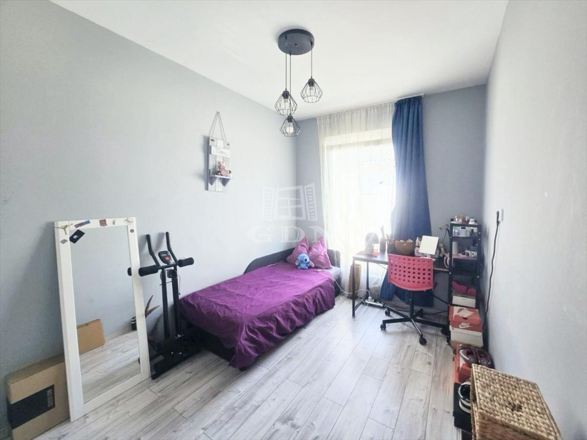 A világos otthon helyet ad egy L alakú előtér - folyosónak, egy amerikai konyha - nappali együttesnek, 3 hálószobának egy fürdőkáddal felszerelt fürdőnek, egy külön helyiségben található toalettnek, valamint egy 18 m2-es panorámás, nappaliból nyíló terasznak.