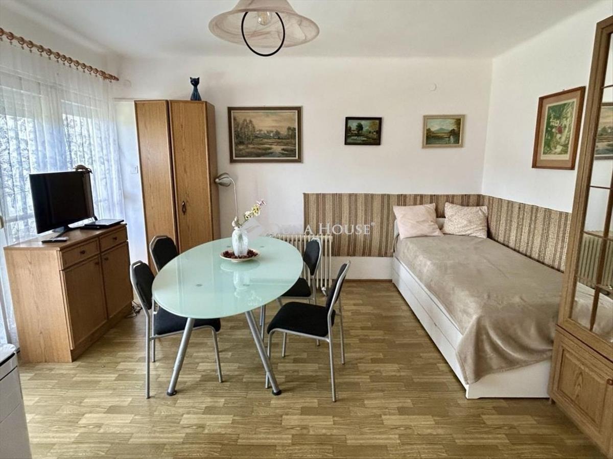 Tihany egyik legkedveltebb, nyugodt hangulatú részén, a Kopaszhegy zöldövezeti környezetében kínálunk megvételre egy kiváló adottságokkal rendelkező ingatlant, mindössze néhány percnyi sétára a Balaton partjától. Az eladásra kínált lakás egy háromszintes épület felső szintjén helyezkedik el, külön bejárattal, 68, 2 m² hasznos alapterülettel. Jelenlegi kialakítása praktikus: előtér, konyhával egybenyitott étkező, fürdőszoba, valamint egy tágas lakótér áll rendelkezésre. Az elrendezés rugalmasan alakítható, így könnyedén létrehozható egy amerikai konyhás nappali és egy külön hálószoba is. a fedett loggia részleges beépítésével tovább növelhető a lakótér. Az ingatlanhoz tartozó, 1228 m²-es, teljesen körbekerített telek rendezett és jól kihasználható. Az udvar több autó parkolását is kényelmesen biztosítja, emellett számos lehetőséget kínál, például fedett beálló, tároló, medence vagy akár nyári konyha kialakítására. a környezet csendes és természetközeli, ugyanakkor a mindennapi élethez szükséges szolgáltatások könnyen elérhetők. a Balaton-part, a kikötő, a strand és a buszmegálló rövid sétával megközelíthető, a közelben kerékpárút is található. Az ingatlan teljes közműellátottsággal rendelkezik. a fűtés jelenleg elektromos megoldással működik, ugyanakkor a telken belül gázcsatlakozás is adott, így a rendszer igény szerint korszerűsíthető. Ideális választás mindazok számára, akik nyugodt környezetben keresnek ingatlant a Balaton közelében. További információért keressen bizalommal! Hitel.hu - Hasonlítsa össze a bankok lakáshitel ajánlatait