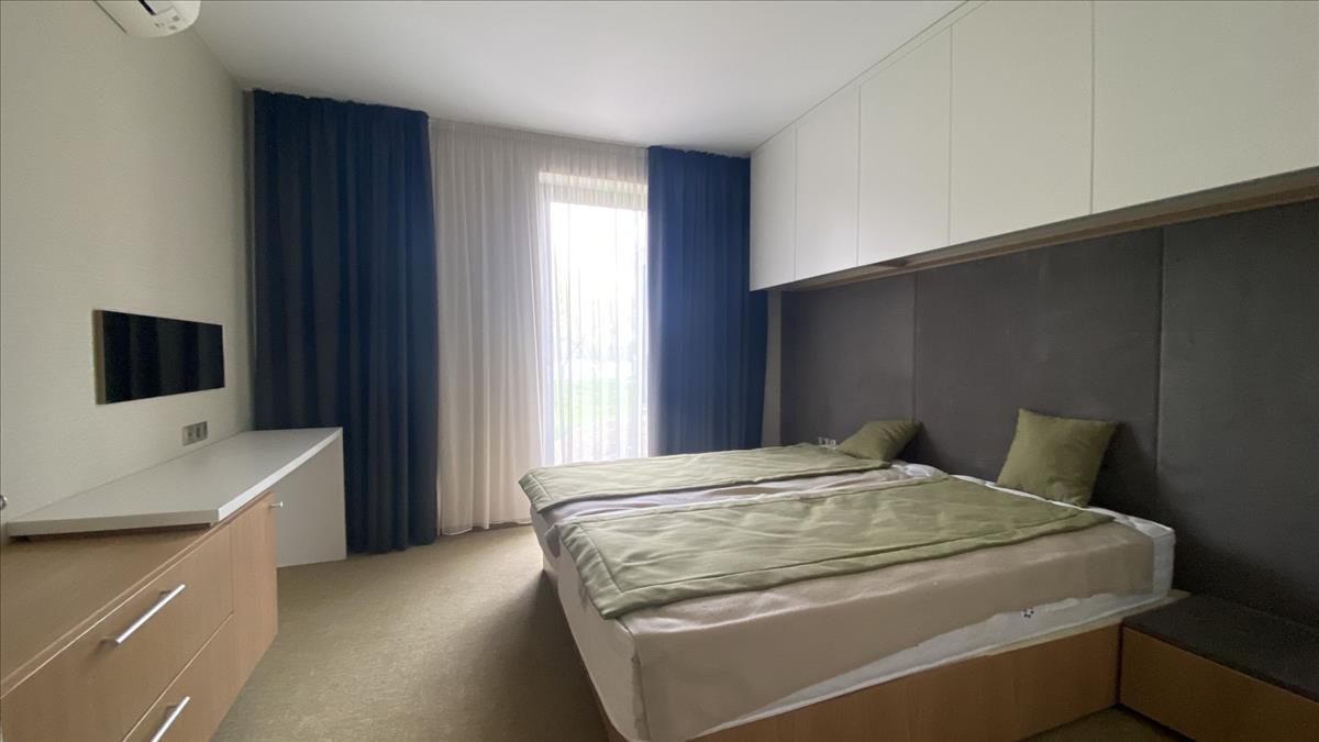 In a beautiful part of Tiszafüred, ground floor, 54 m2 + 16 m2 terrace, American kitchen - living room + 1 bedroom, viewing the tisza, newly built, turnkey apartment + furnished for sale!