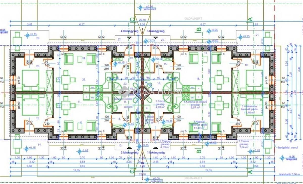 A gyönyörű környezetben házanként 4 -4 db, egyszintes, teraszos lakás kerül kialakításra.