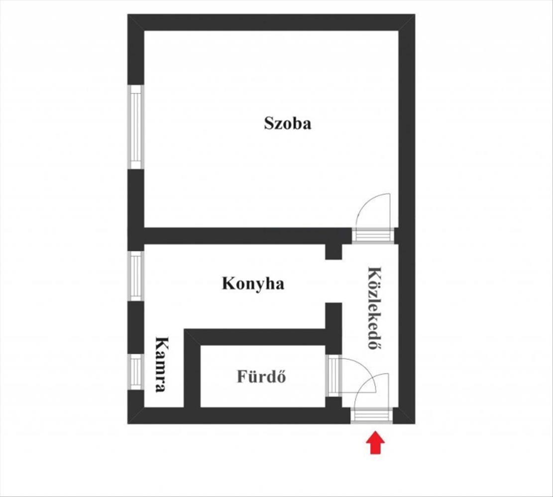 - szoba, konyha, kamra, fürdő + wc, közlekedő helyiségekből áll