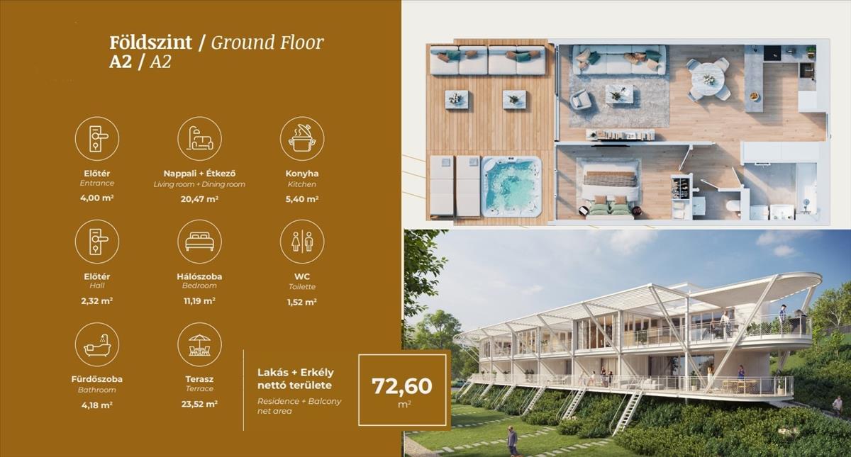 A2 apartman 49, 08m² + 23, 52m² = 116. 500. 000. - Ft
