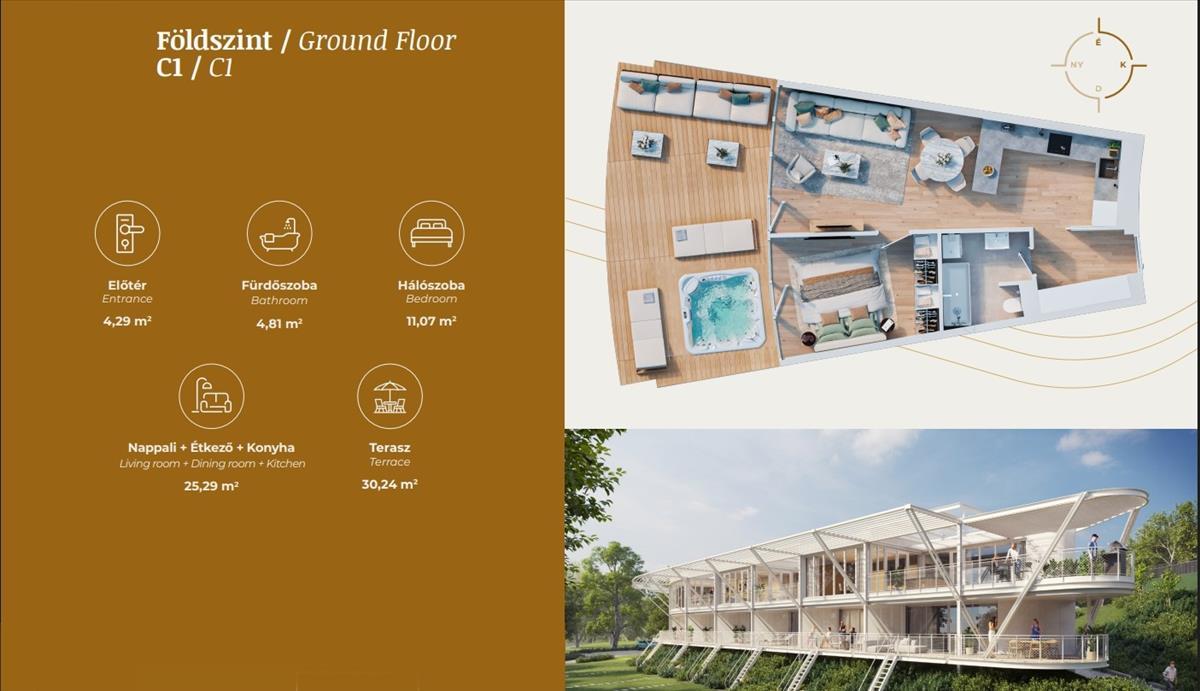 C1 apartman 45, 48m² + 30, 14m² = 116. 500. 000. - Ft