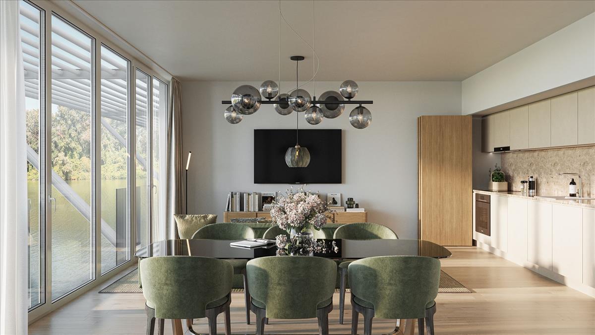 The apartment has one of the greenest and most comfortable solar-powered air-to-water heat pump systems currently in use, which sets a pleasant temperature according to the season and has a "smart home" function, with remote control of cooling/heating, shading and alarm on request. Quality laminated flooring and ceramic tiles can be found in all rooms.