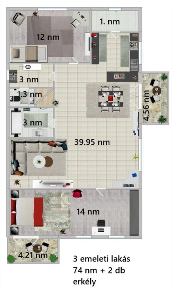 - Alapterület:74 m2