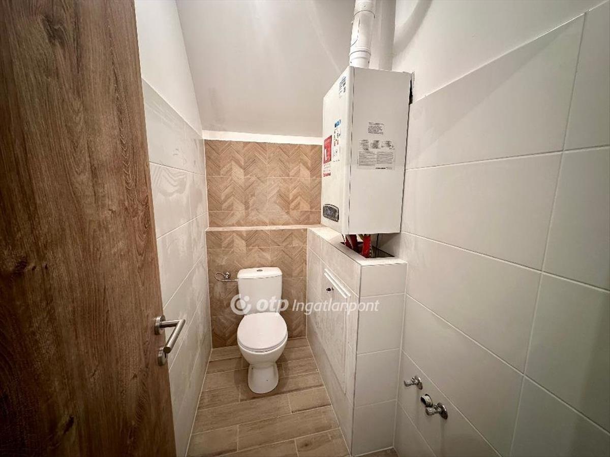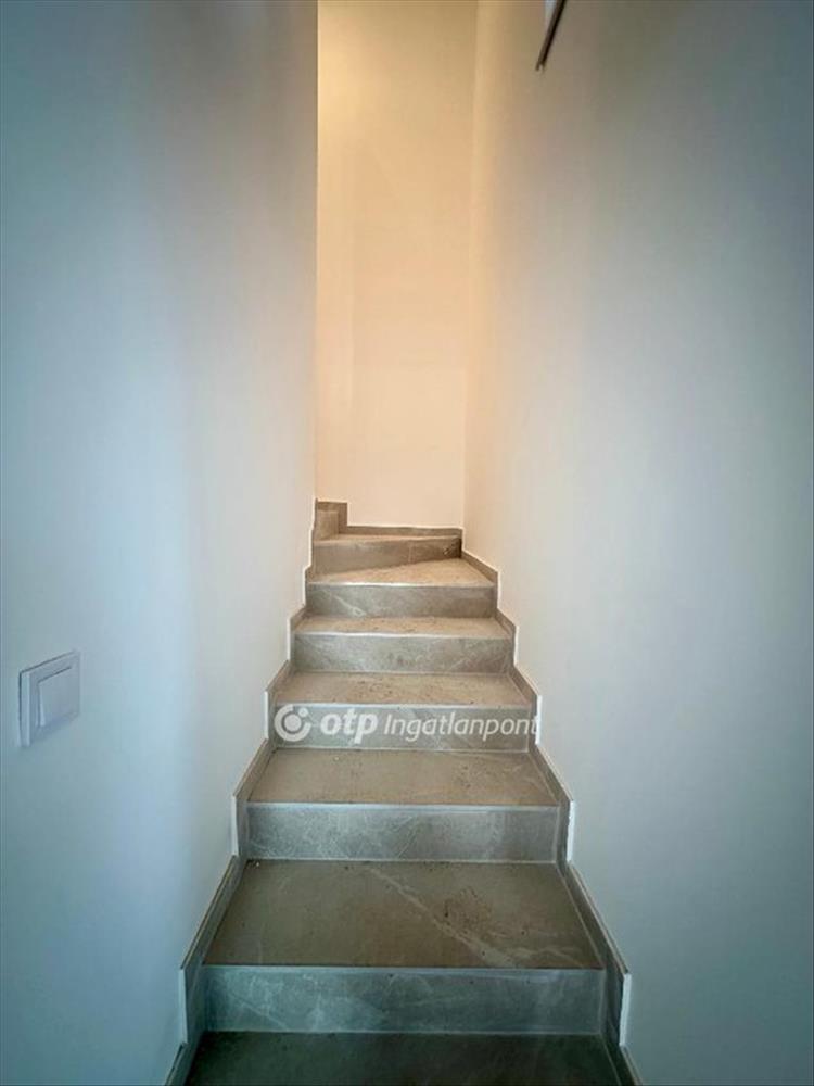Az új építésű ingatlan világos, jól átgondolt elosztású: a földszinten előszoba, nappali-konyha-étkező egy légtérben, fürdőszoba és tároló, az emeleten közlekedő, három külön nyíló szoba és külön wc került kialakításra.