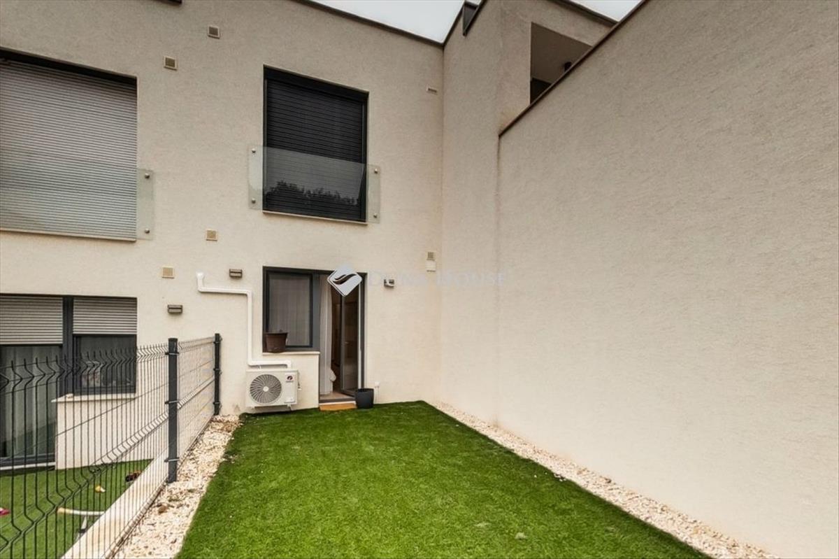 Privát kert: 200 m² elkerített, füvesített, automata öntözőrendszerrel, bokrosítva