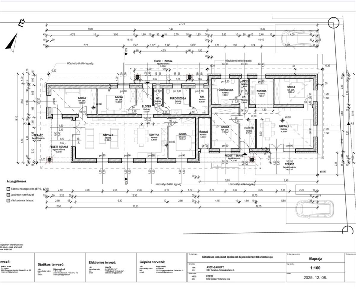 IKERHÁZ a: 83nm (70, 56nm +25, 68nm terasz), 3szoba, autóbeálló, 69, 9m FT