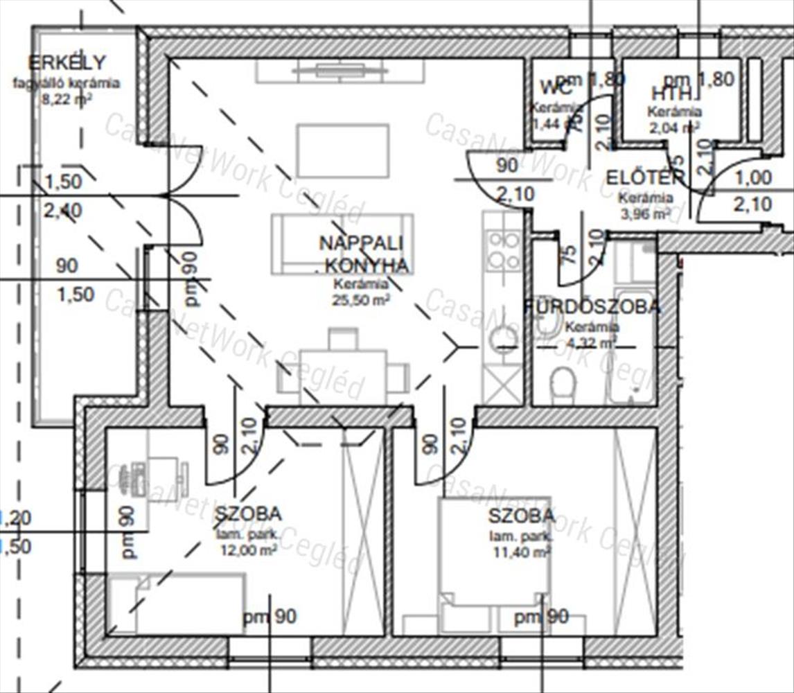 Minőségi burkolatok: Laminált parketta melegburkolatként, választható mintázattal. Hidegburkolat: padlólap, legfeljebb 6. 000 Ft/m² értékben.
