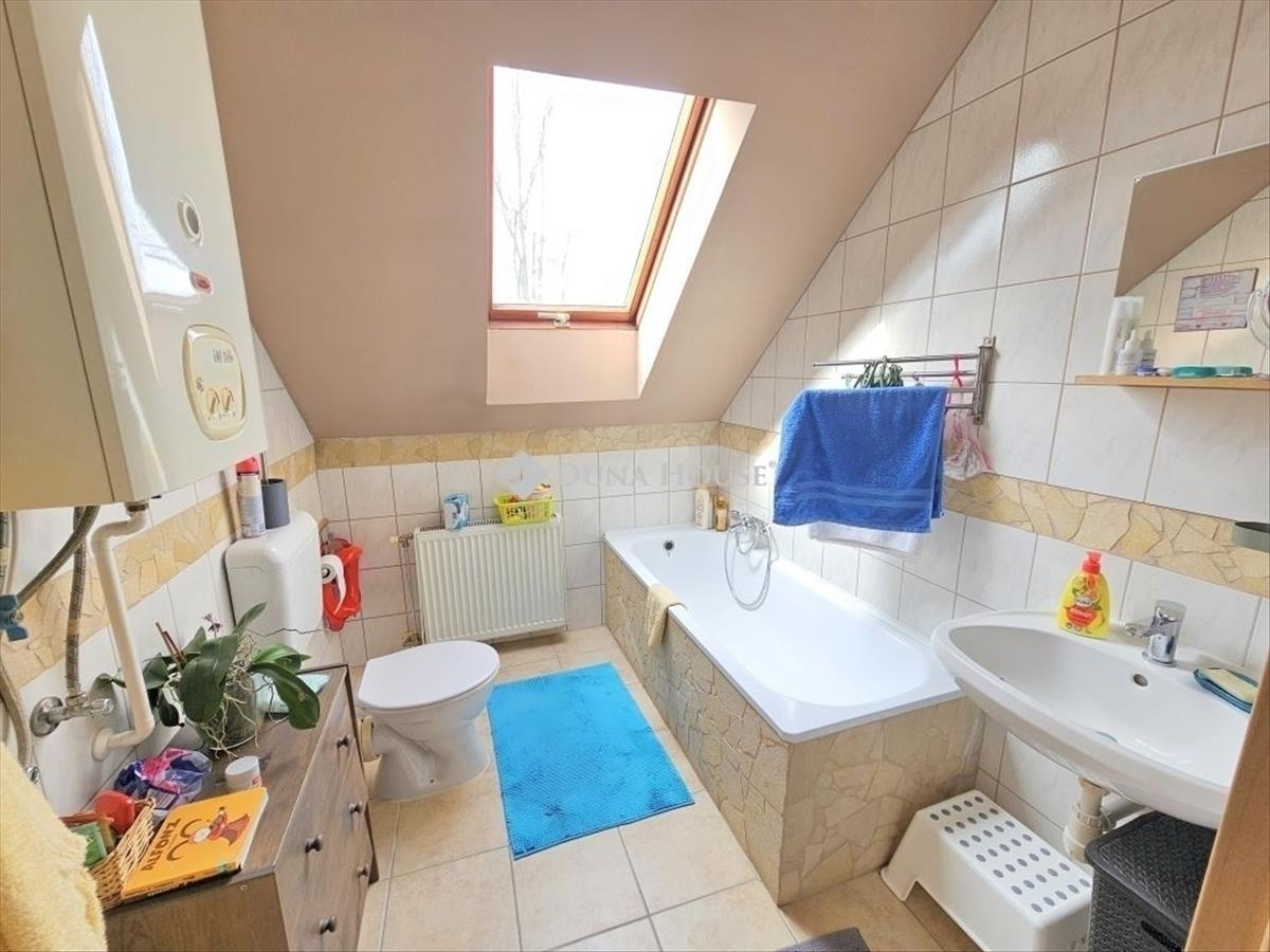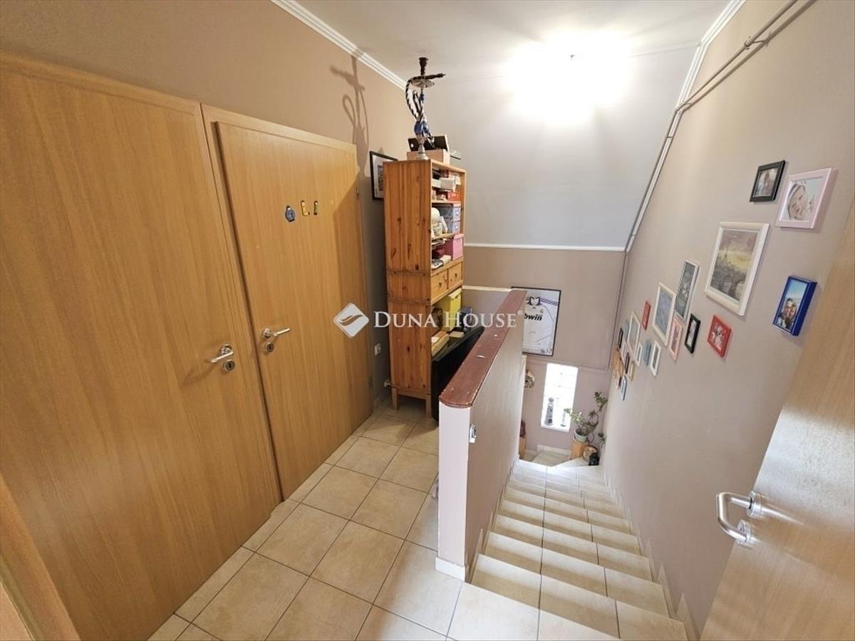 A 2005-ben épület, 250m2-es, saját, intim kerttel és tágas terekkel rendelkező ingatlan szerkezetileg kiváló állapotnak örvend, külső szigetelésének, thermo üveges, műanyagkeretes ablakainak köszönhetően alacsony rezsivel üzemeltethető. a sorház jellegű társasházi lakásban található kombi gáz cirkó, radiátoros hőleadással gondoskodik a kellemes hőmérsékletről a hideg hónapokban, valamint a fűtő-hűtő klímarendszer is rássegíthet, a nyári hőségben pedig lehűti új otthonát. Masszív, sávbetonalapja, cseréphájazása, kerámiatégla falazata, betonfödémzete biztosítja az időtállóságot, belső két szintje, kádas és zuhanyzós dupla fürdőszobája, valamint a külön nyíló wc helyiség, a rengeteg tárolási lehetősége és a kertjének mérete miatt kiváló lehetőség családosoknak, pároknak, vagy családtervezőknek egyaránt. a felső szinten két nettó 12, 5m2-es (br. 16, 6m2-es) hálószoba és egy kádas fürdőszoba kapott helyet egy kellemes méretű közlekedővel. Az alsó szinten külön nyíló illemhelyiség, zuhanyzós fürdő, kamra, közlekedő, előszoba és még lépcsőalatti tároló is van, a dupla ablakkal megáldott több, mint 20m2-es nappali és tágas konyha mellett. a konyhabútor gépesített, Ariston mosogatógép, Indesit gáz főzőlap, fentre elhelyezett sütő, kivezetett Teka páraelszívó és a beépített bútorok természetesen az ár részét képezik. a napfénes nappali közvetlen teraszkapcsolatán keresztül is juthatunk ki a zöld sövénnyel körbeölelt, cseresznyefás intim, rendezett kertbe, ahol egy hatalmas fedett filagória szerű kerti kiülő is helyet kapott. Térkövezett, járdázott részeket alakítottak ki és egy szigetelt, galériázott, 12m2-es kerti tároló is elhelyezésre került. a társasház rendezett, a szomszédok normálisak, a ház kialakítása és elrendezése miatt semmi nem hallatszik át, elhelyezkedésének köszönhetően csendes és nyugodt környezetben valósíthatja meg új otthonát.