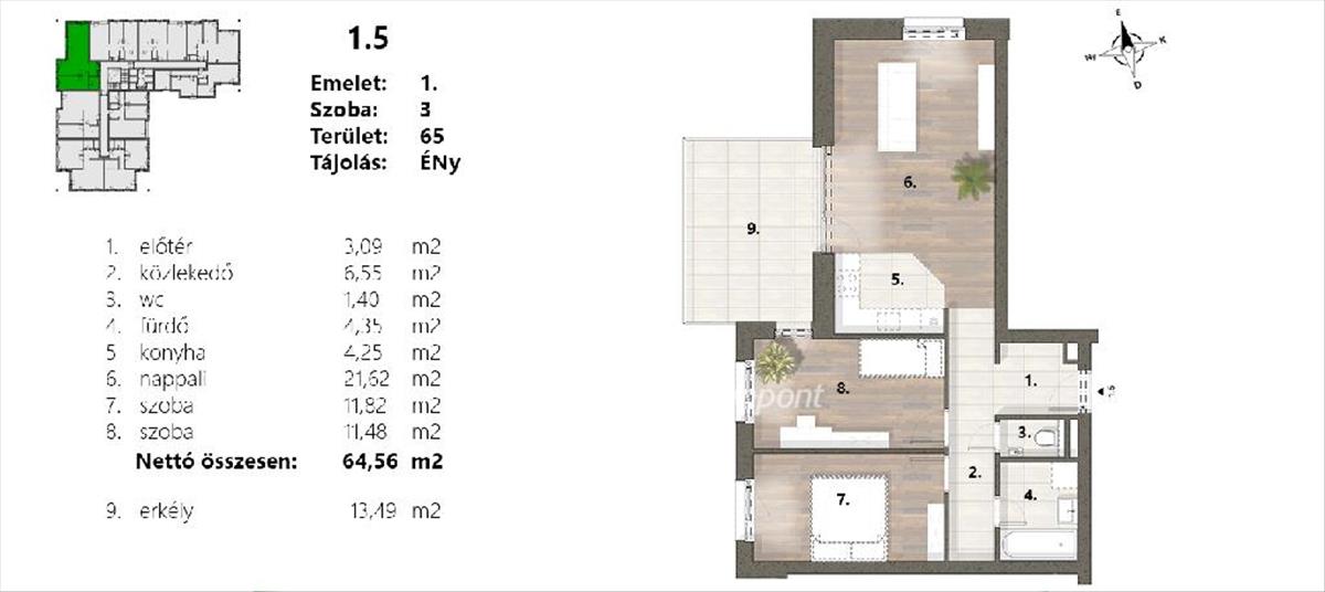 Az épületben jellemzően nappali + 2 szobás, 60-70 nm közötti területű lakások találhatók, minden lakás rendelkezik erkéllyel vagy terasszal!