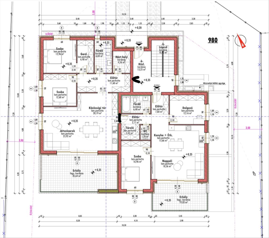 - Nappali + 2 vagy nappali + 3 hálószobás elrendezések