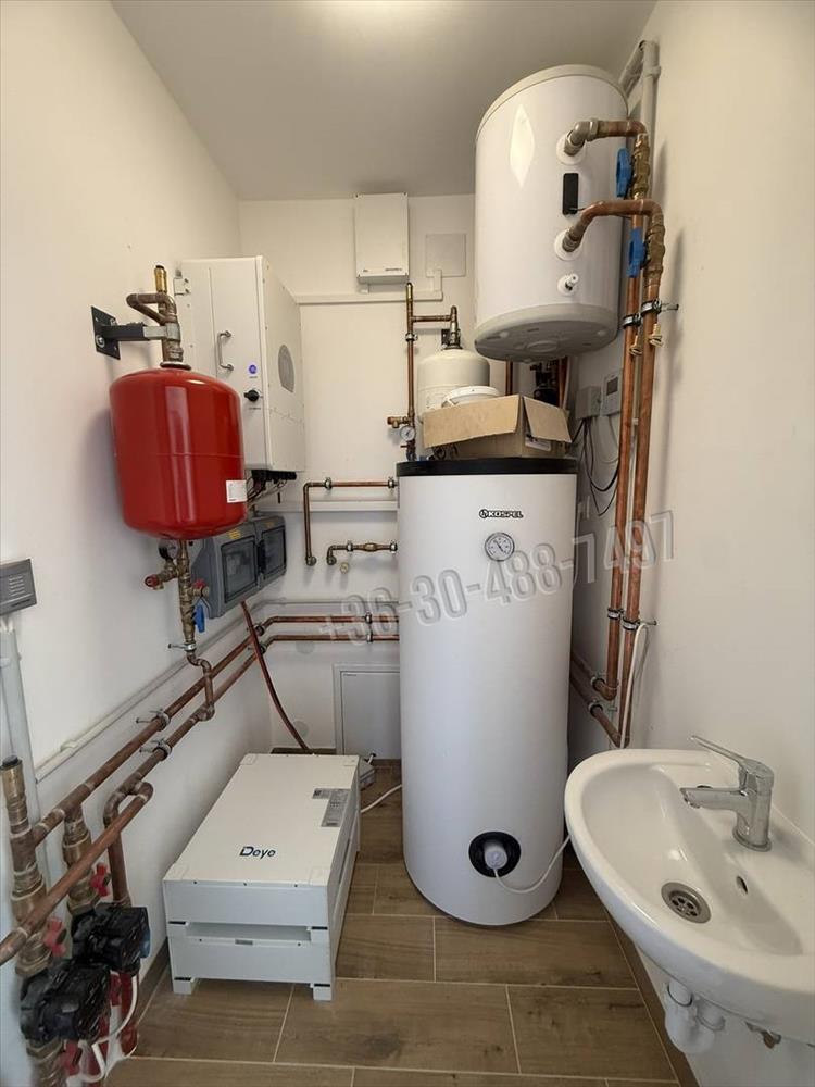 A hőszivattyús fűtés, a padlófűtés és a 5, 5 kW-os napelemes rendszer (akkumulátorral) maximalizálja az energiahatékonyságot.